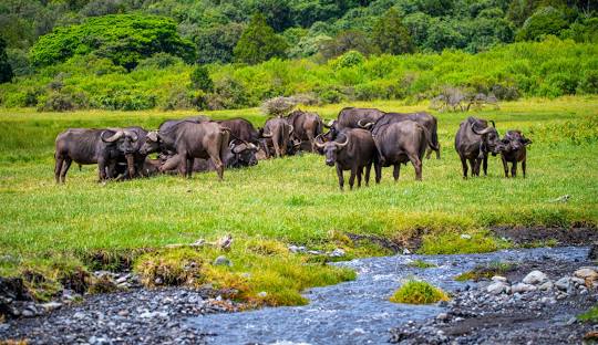 You can see lions, elephants, rhinos, buffaloes, hippos, zebras, cheetahs, flamingos, and wildebeests.